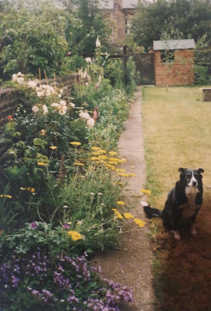 My sister recently found and sent me a photo of the first perennial border I planted in London – and, Cami, our long-departed family dog on a rare visit from the Lake District. It is for what was then her and my 25 metre-long garden in Hackney. It’s summer, 1989.