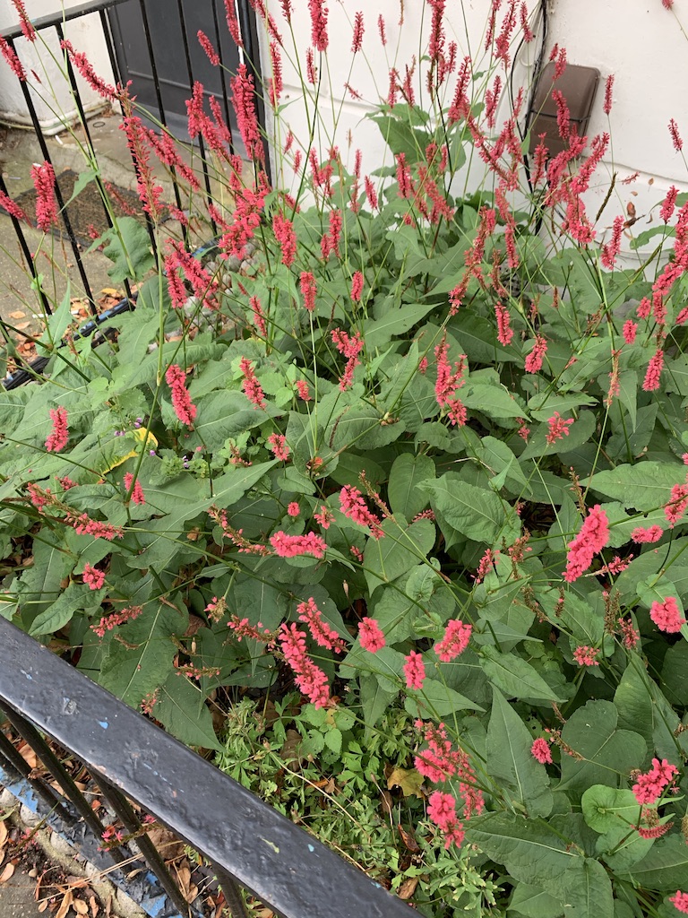 Mine is Persicaria amplexicaulis, a clump of which I was gifted over thirty years ago and from which every single plant I have since used is descended. It’s extremely tough, the only plant to grow in the dust below an elderly Cordyline australis we inherited and integrated into the design of our original London garden (below in 2012).